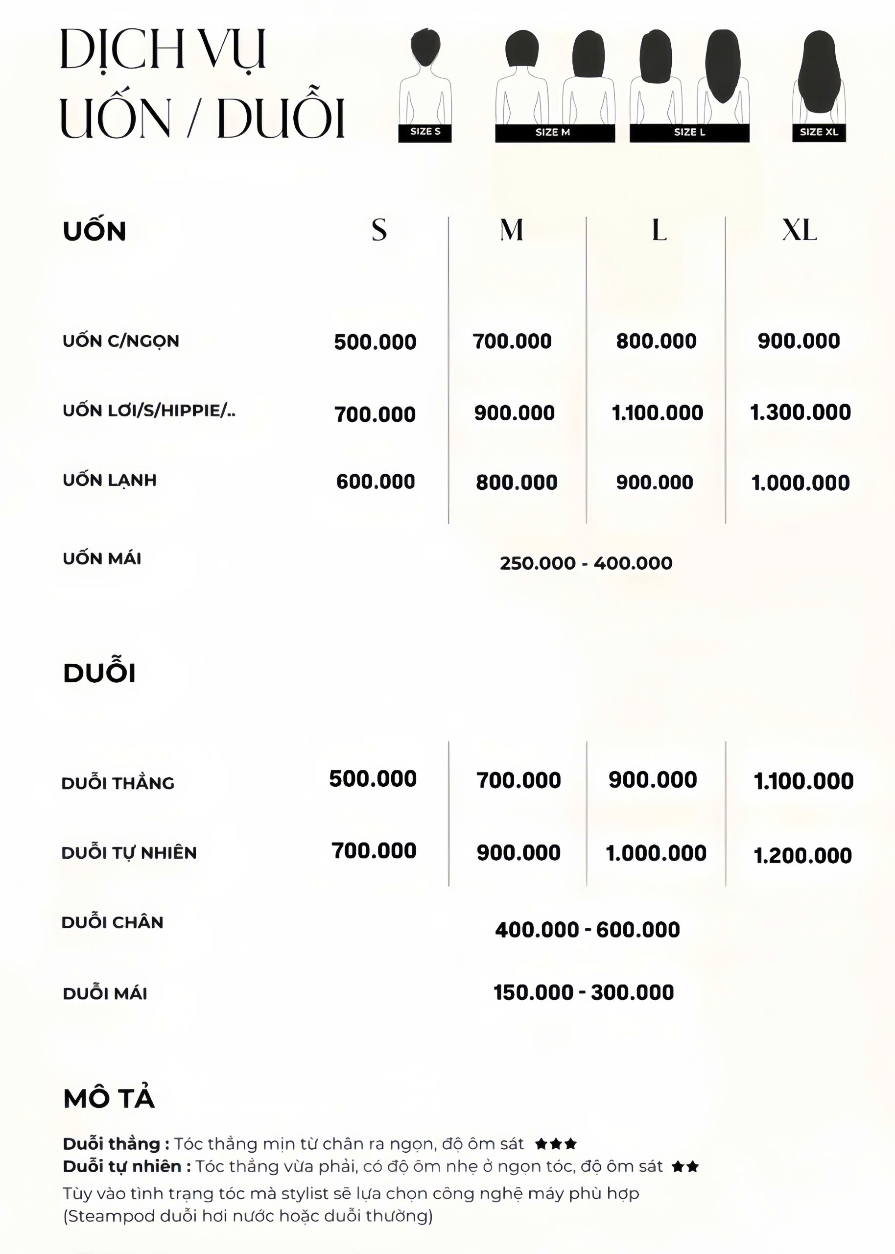 *Giá cắt đã gồm: tư vấn + cắt mái + gội xả sạch + tạo kiểu sau khi cắt